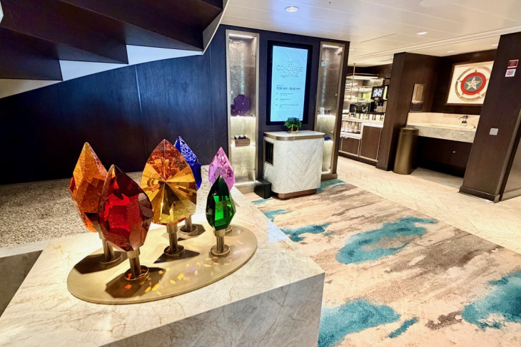 Category 1A, Concierge Destiny Tower Suite. Perched at the top of the ship and the largest of all the suites onboard, this unique one-of-a-kind suite is over the top. Housed in the ship’s forward funnel, it’s the ship’s top suite in more ways than one, themed after Iron Man's luxurious, high-tech penthouse. Spanning two stories, the suite features sleek industrial designs, armor-like materials, and Avenger-inspired deco.