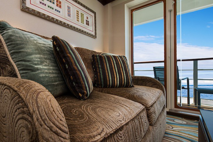 For a splendidly luxurious family reunion, it’s possible to connect these two top suites with a central one-bedroom suite and two Family Concierge Staterooms to accommodate up to 25 guests with three suites and two staterooms wrapping the bow of the ship (the staterooms open to each other in the Suites’ foyer, and verandahs all open to each other if requested).