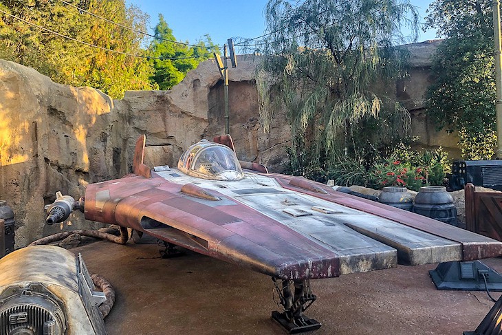 I guarantee you’ll be struck speechless and at a standstill as you round the corner and come to a screeching halt at the first glimpse of the most magnificent attraction setting yet in a Disney park, the massive Millennium Falcon: Smuggler’s Run, particularly mind-boggling after dark. It truly is a sight to behold!