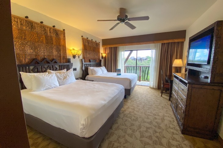 Cara’s Tip: Standard villas offer a view of the front of the resort or the pool, but might also face the valet area with a constant stream of buses and cars passing by your room balcony at all hours of the day and night. From the savanna view villas, you will also have a view of the next-door Animal Kingdom Lodge. A lobby level villa (floor two) comes with up-close-and-personal savanna views, so think about requesting one.