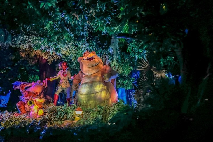 This is one charmer of an attraction. Revamped in 2024 from Splash Mountain to Tiana’s Bayou Adventure, the new incarnation is a wonderful one. Tiana is fixin’ to have a big bash and is looking for critter musicians to entertain. She encounters all sorts of adventures along the way as your log bebops along. Float through bayous, marshes, and caverns, all a delight to the eye with loads of colorful detail. As the ride creeps upward, you’ll be so enamored with the bayou scenes you’ll barely notice the final doozy of a splashdown over a 5-story waterfall. It’s pretty tough to keep your eyes open (at least for first-timers) but try to grab at least a peek of the park from the top. The ride ends with a peak of Tiana’s grand Mardi Gras celebration.