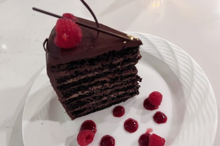 Steakhouse 71 Chocolate Cake - Layers of Whiskey infused Chocolate Cake, Chocolate Mousse, Raspberries (Item made with or contains alcohol) $13.00